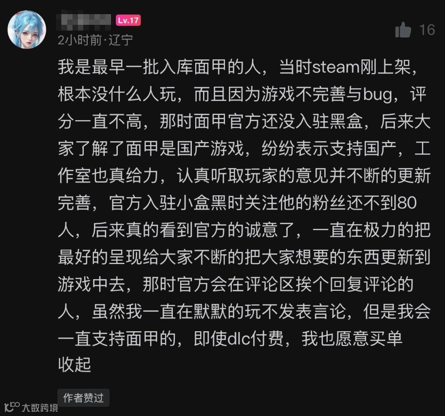 这也使得游戏在海内外呈现出了差异极大的舆论环境,在Steam平台上,2024年以“抢先体验”状态上线的《灵魂面甲》,其实是当年除《黑神话:悟空》以外销售额最高的国产PC游戏,曾一度登顶Steam全球热销榜第一,销量突破了80万套;但在国内,鲜有看到玩家关于这款游戏的讨论,如今近2万条的Steam”特别好评“里,中文留言仅占16%。