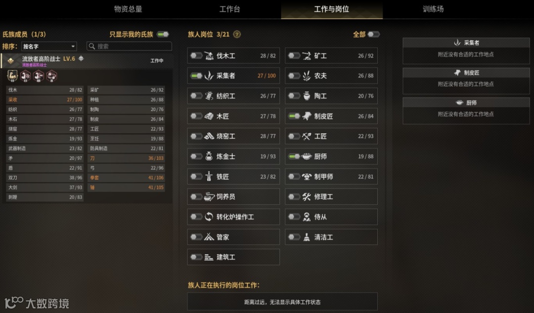 当时社区里其实玩家群体很杂,有SOC类型的老手很快适应了这套系统,觉得无需调整的,也有新手连系统的功能介绍都读不懂,玩得一头雾水的。但在1.0里,制作组真的改进了族人的AI和管理模式,通过功能更全面的工作台管理,玩家除了能更快捷的“一键分配岗位”,而且空闲的族人还能主动去“揽活干”。
