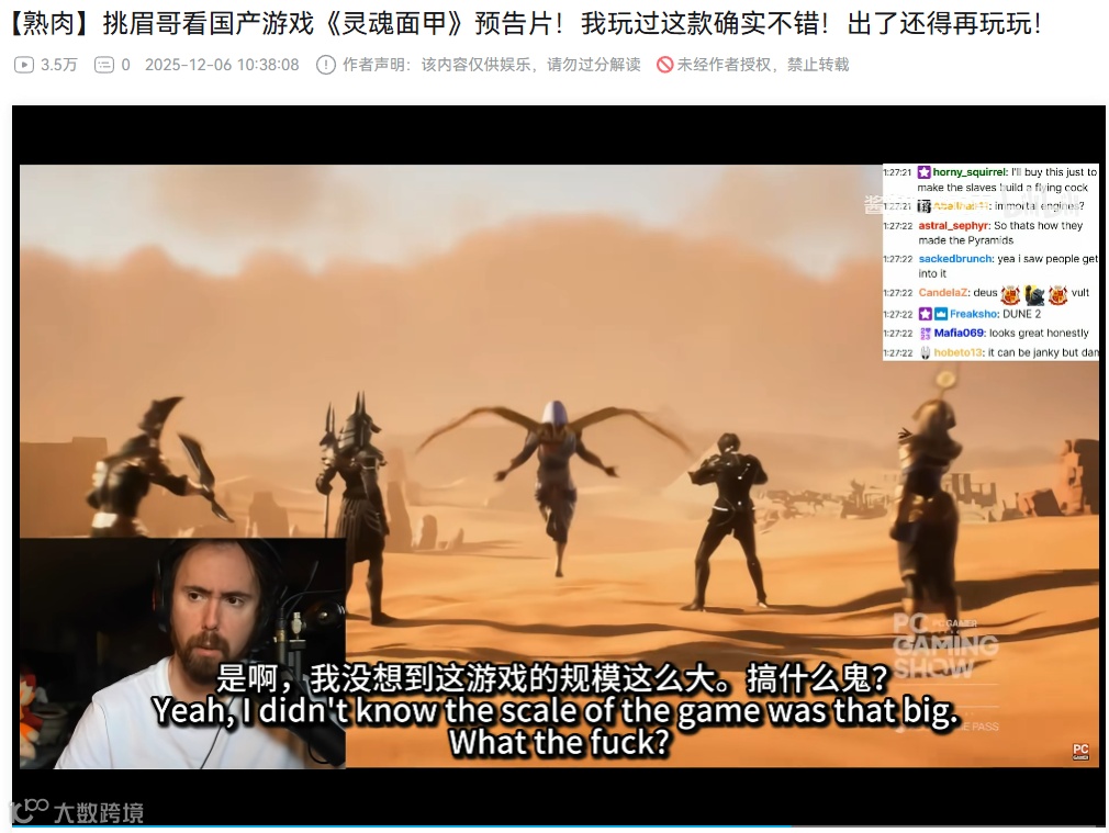 “挑眉哥”Asmongold直播观看《灵魂面甲》最新预告