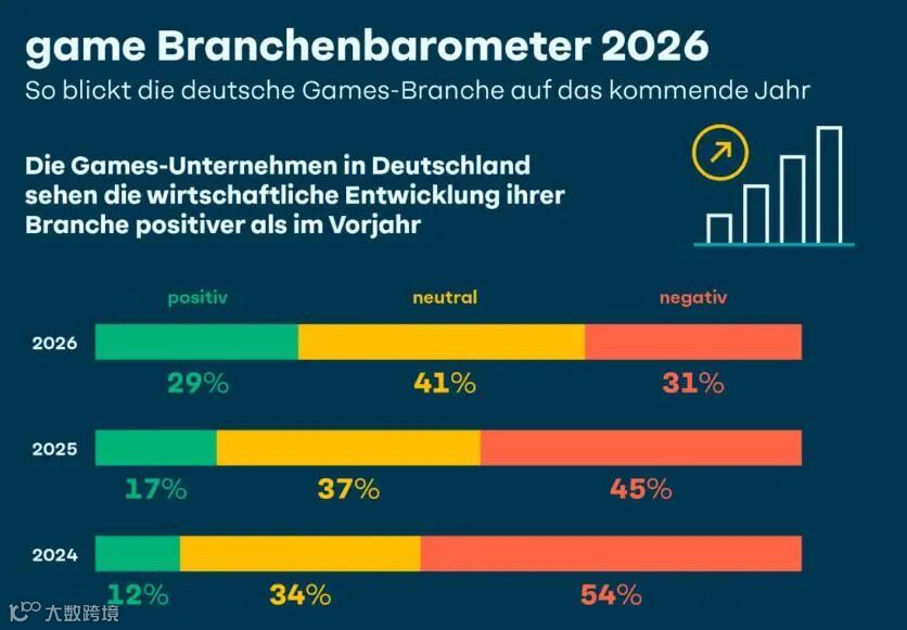 根据德国电子游戏行业协会出具的《2025产业年度报告》,这项计划确实产生了一定的成果,比如有超过半数的德国游戏公司都预计2026年的业务运营将出现积极增长: