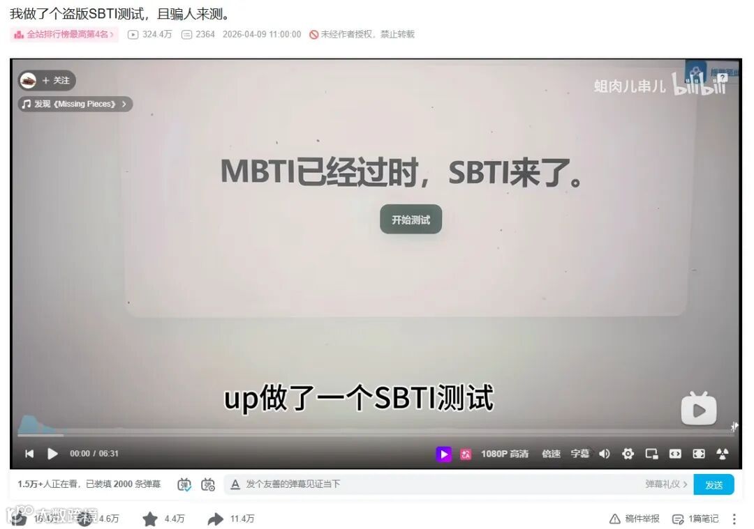 你可能曾见过昨晚朋友圈刷屏的IMSB、OJBK、ZZZZ人格测试。但一天后,SBTI测试链接已关闭,原作者删除了B站视频,尽管播放量仍在增长,仿佛昨日热潮从未存在。