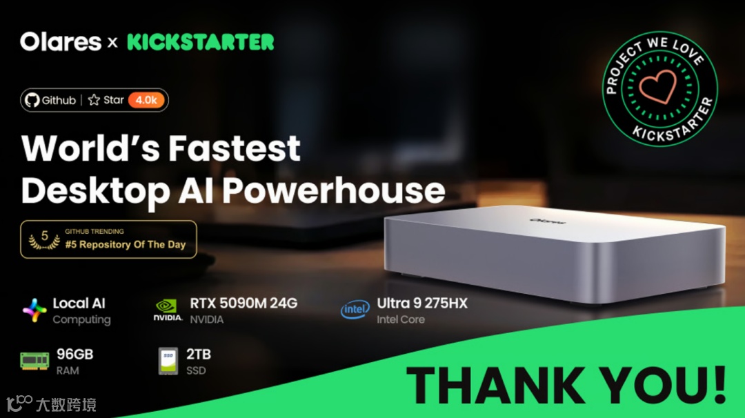 在AI大模型快速发展背景下,云端算力依赖引发的隐私泄露和网络延迟问题日益凸显。2025年底,初创公司Olares在Kickstarter推出Olares One桌面AI设备,迅速成为市场焦点。该设备最终筹集230万美元,吸引800多名支持者,在科技类众筹项目中表现突出。