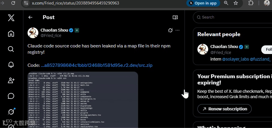 如果你还没看到 Claude Code 的泄露源码,它最初出现在一条由 @Fried_rice 发起的 X 线程里,随后很快演化为一堆仓库、分叉和更新。