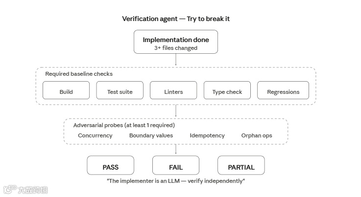 Anthropic 很清楚由 LLM 生成的测试可能会“自证循环”。这个 verification agent 被要求不要轻信。