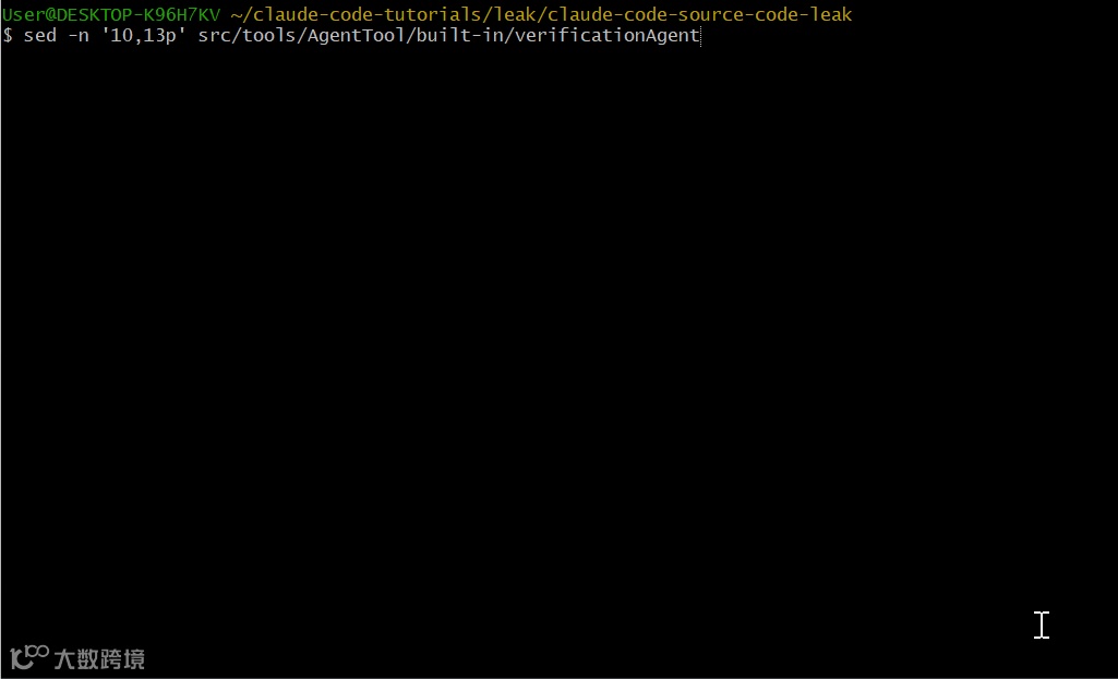 src/tools/AgentTool/built-in/里有几个专用代理,其中一个是verificationAgent.ts。它的开头一句就说明了用途: