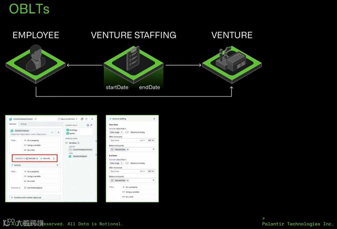 在确立了四大原则之后,演讲通过具体的特性展示,阐述了 Palantir 如何将这些理念产品化,落地到具体的复杂业务场景中。