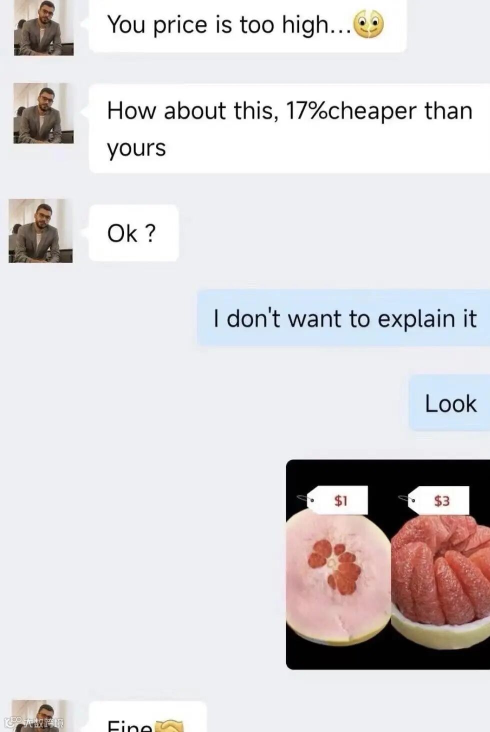 结果过了几天,他又联系我,说: