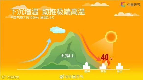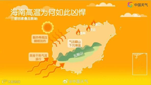 受西南低压槽和副热带高压共同影响,海南岛西南气流翻越中部五指山脉时产生焚风效应,导致北部和西部地区显著增温。观展人员需兼顾防晒与防暑。