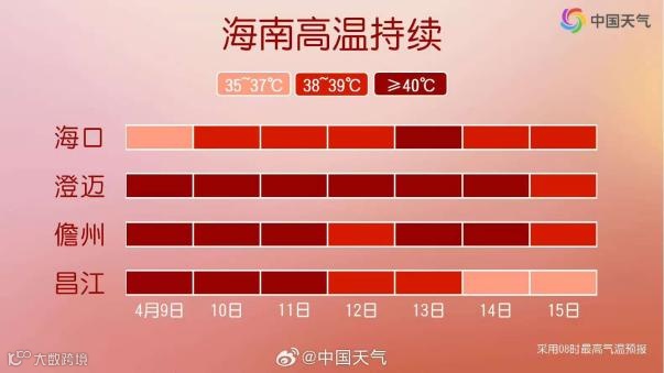 海南省气象局发布2026年4月10日高温三级预警,海口、澄迈等9个市县部分乡镇将出现37℃以上高温,体感温度更高。