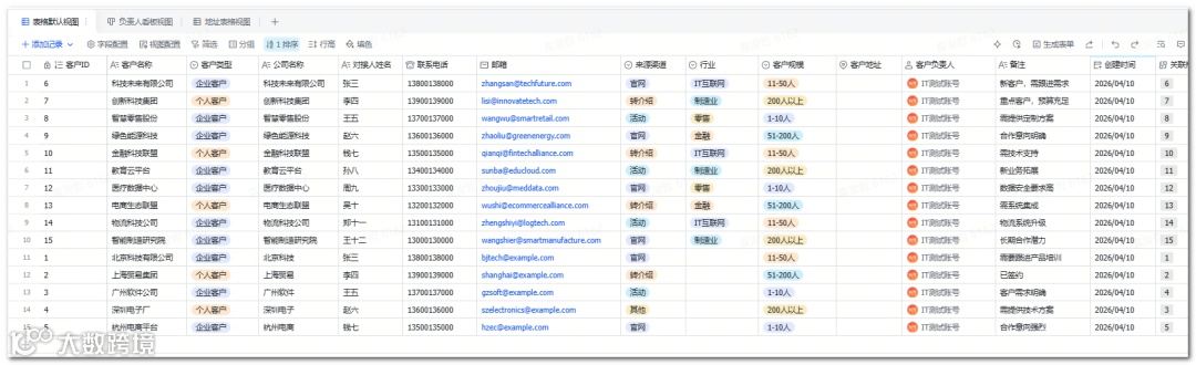 完成基础表格与核心字段配置,快速投入使用 -