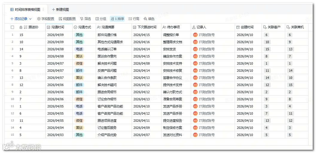 - 规划动作记录:每次沟通方式、摘要、下次跟进时间及待办事项,决定跟进表结构。