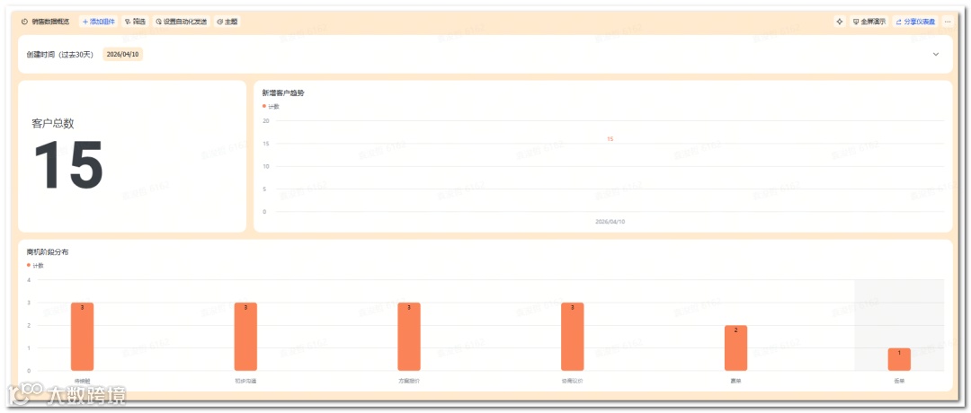 试用一周后,依据反馈微调字段及自动化,最后完善仪表盘配置