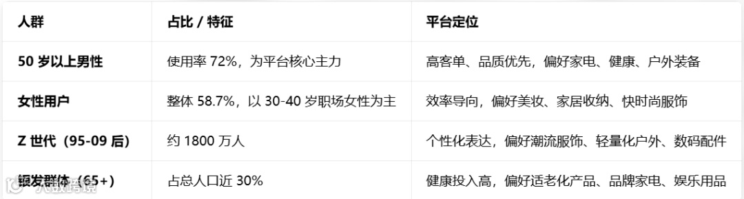 - 设备:全年龄段移动端购物占比持续提升,60-69岁群体电脑使用率仍超50%