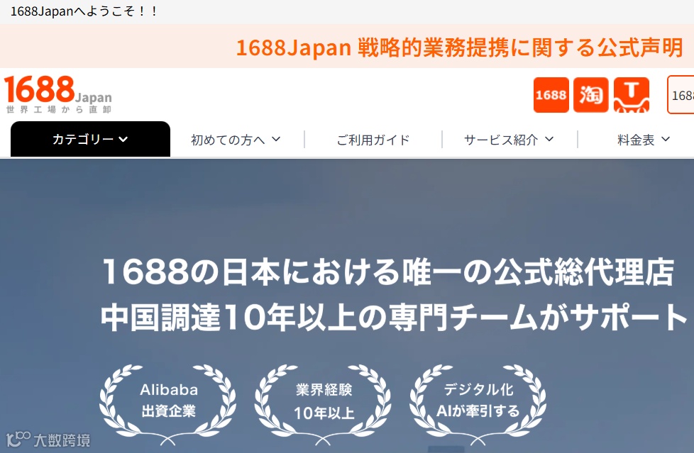 1688Japan官方网站界面展示