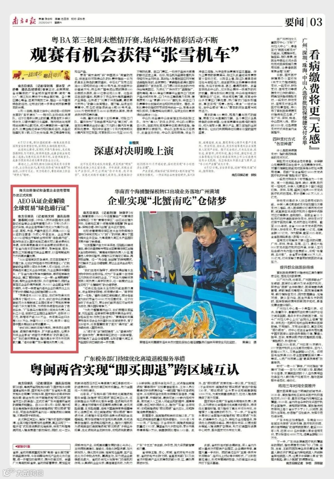 (南方日报讯 记者/肖文舸 通讯员/陈琳 潘春晓)日前,《中华人民共和国海关注册登记和备案企业信用管理办法》正式实施,将企业信用等级优化分为高级认证、认证、常规、失信、严重失信五级,明确AEO(经认证的经营者)为核心守信主体。AEO认证为企业提供全球贸易“绿色通行证”,货物在互认国家和地区通关可享便利化待遇,提升通关效率、降低贸易成本。广东省内海关聚焦培育、服务、激励三方面,精准对接企业需求,助力外贸高质量发展。