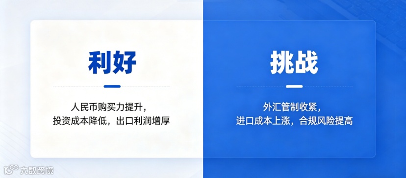 在当前汇率及外汇管制新规(免证购汇额度从10万美元降至5万美元)双重作用下,呈现两面性影响: