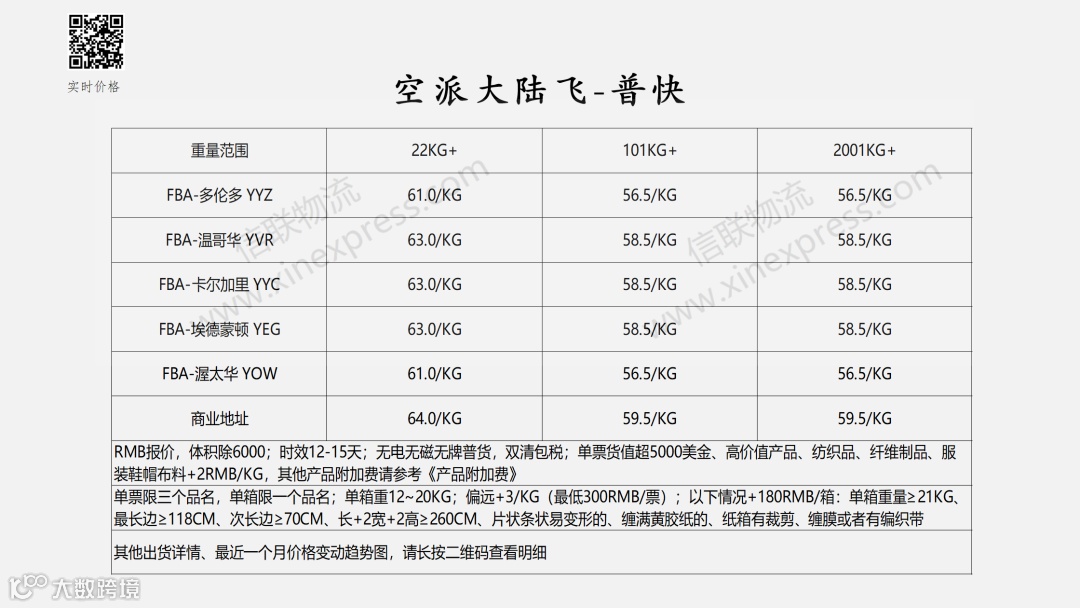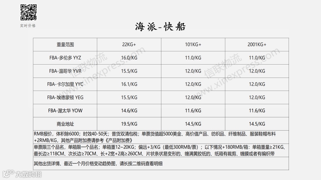 加拿大专线国际物流报价表——2026-4-11