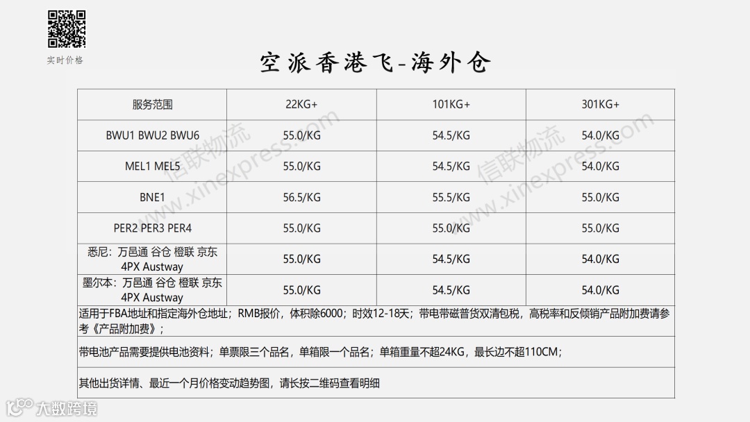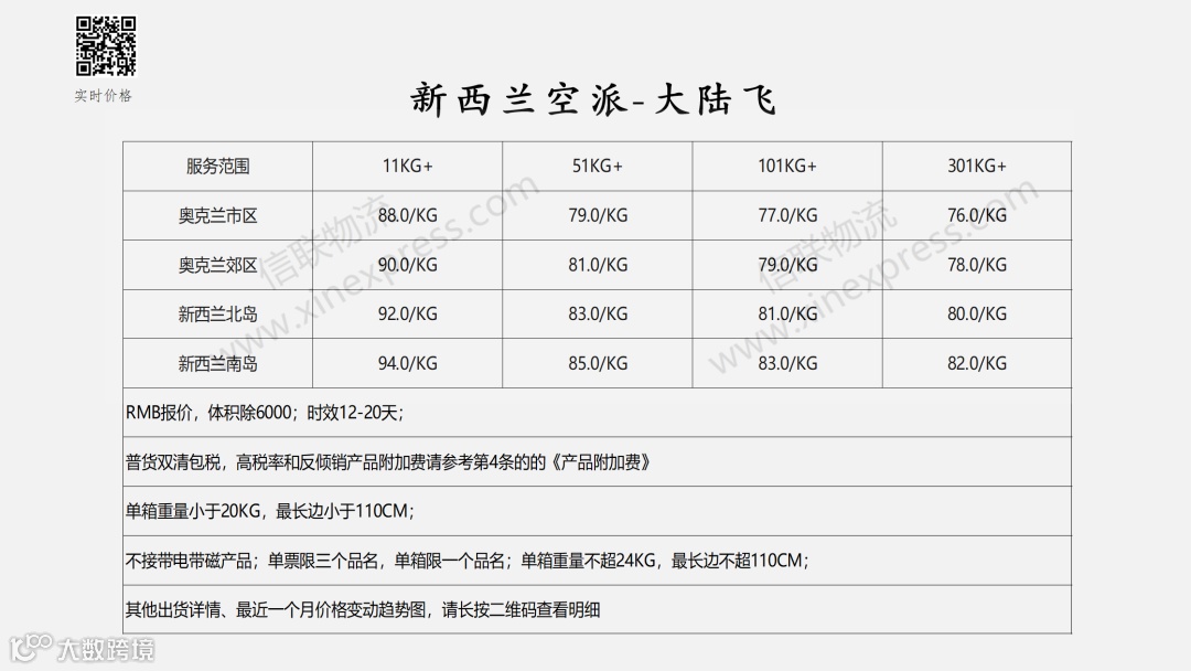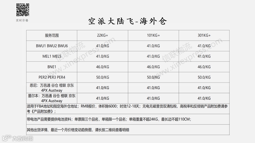 澳洲专线国际物流报价表——2026-4-11