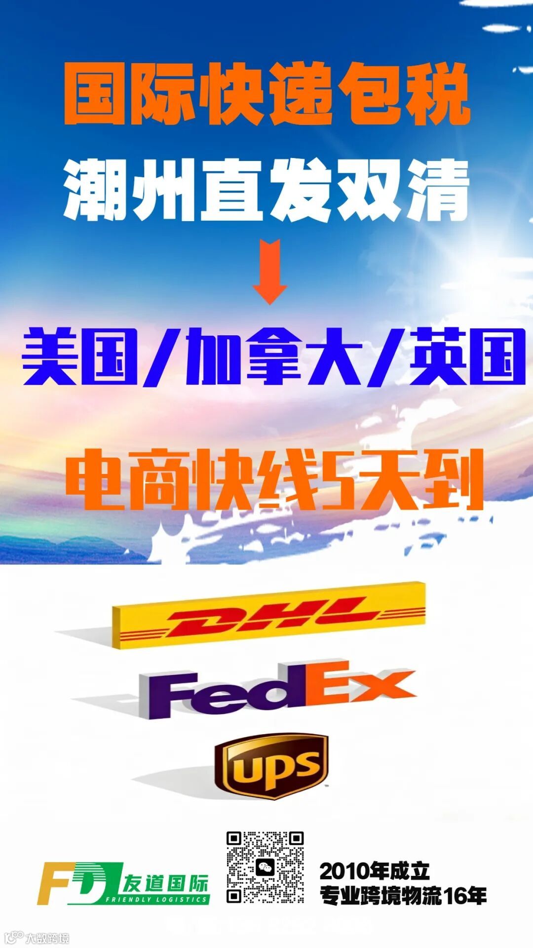 友道国际物流成立于2010年,总部位于深圳,专注跨境物流十余年。持有国家交通部颁发的无船承运人资质及中国航空运输协会国际货运代理资格,获商务部批准为一级国际货运代理。主营双清包税至美国FBA仓库服务,支持DHL、UPS、FedEx等国际快递渠道。
