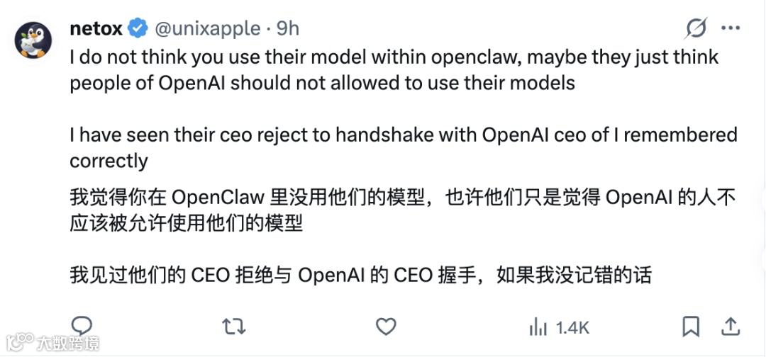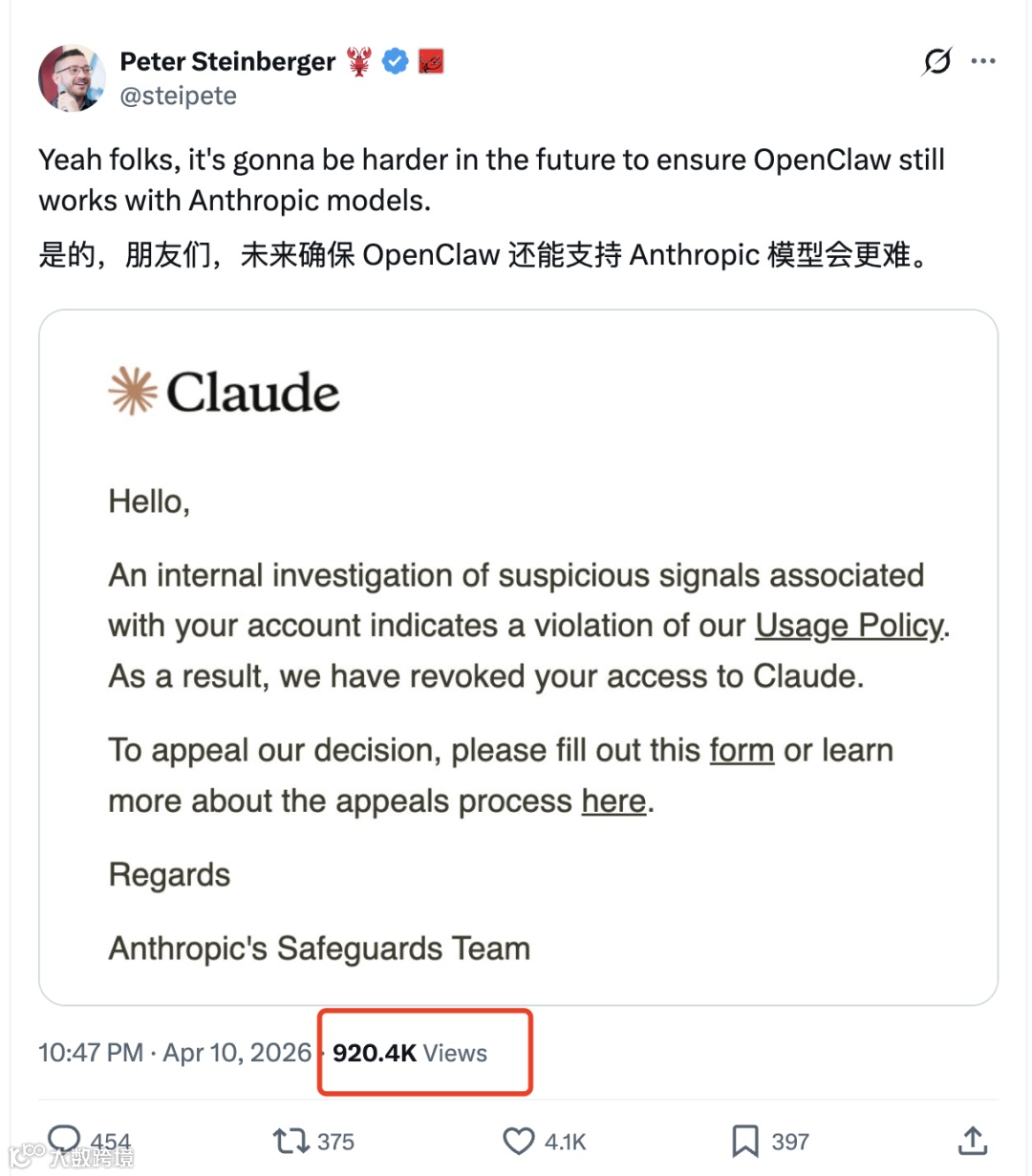 公司一度暂停OpenClaw基金会创始人Peter的Claude服务权限及API访问权限,引发社区热议。