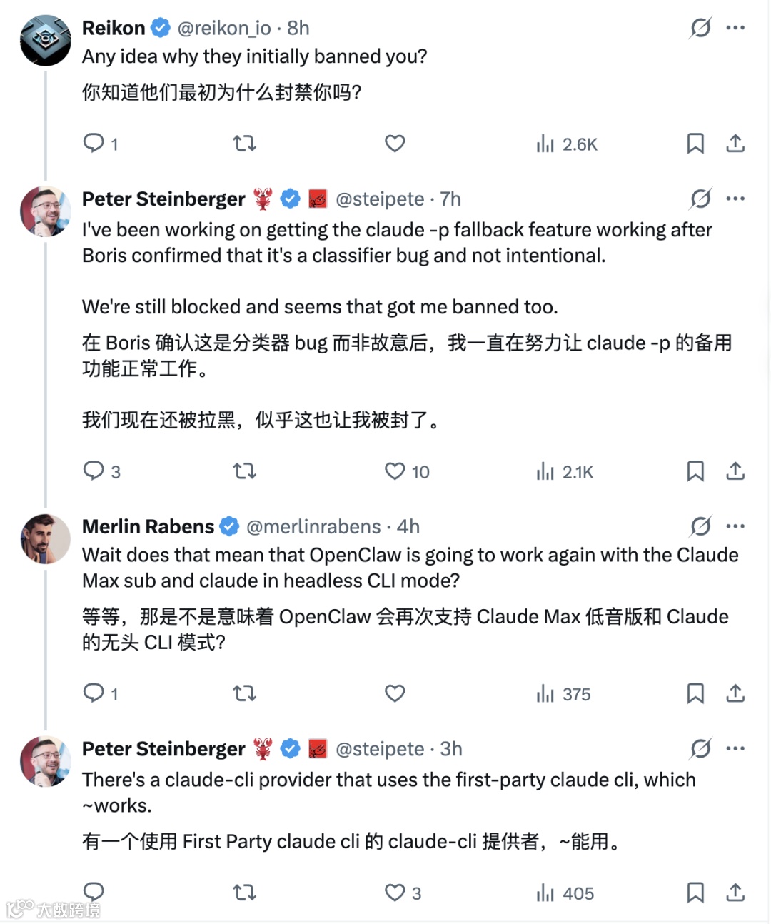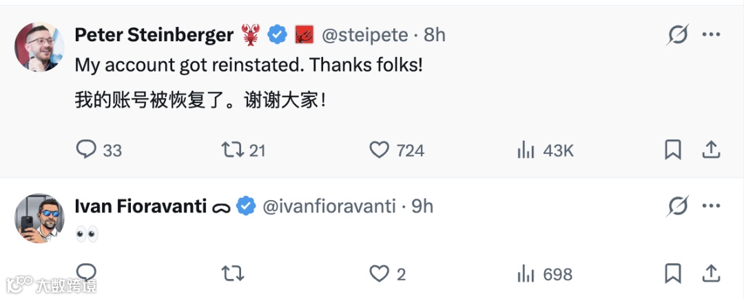事件起因于Peter收到通知称其账号违反使用政策,但未说明具体条款。他在社交平台披露此事后,Anthropic员工随后解释为系统误判,系过度敏感的滥用检测分类器导致,并立即恢复账号。