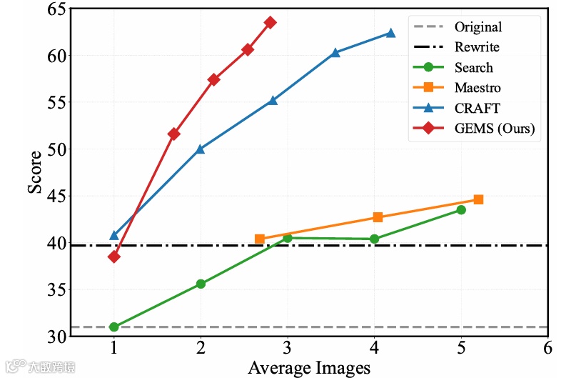 轮次分析表明GEMS兼具性能与效率优势。