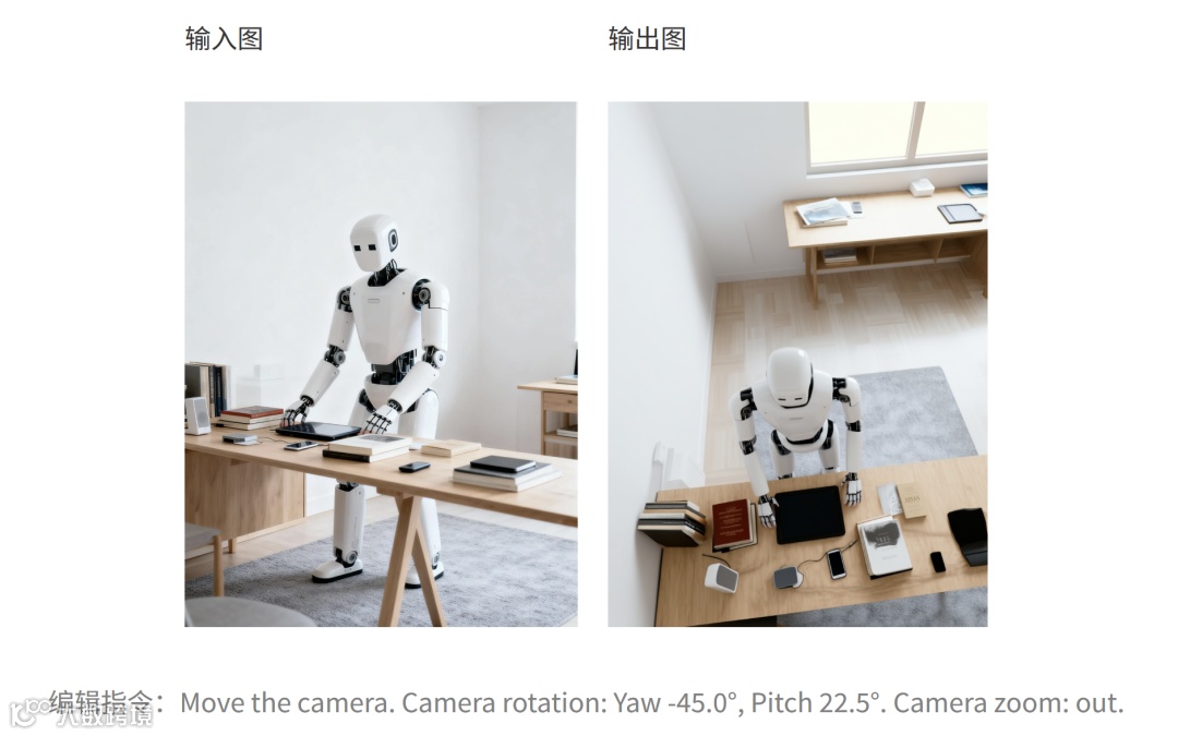 通过自然语言指令(如"相机右偏30度、下俯15度")即可生成几何关系正确的多视角图像。透视、遮挡及光影逻辑均严格遵循三维空间规则,告别传统模型中的画面失真问题。