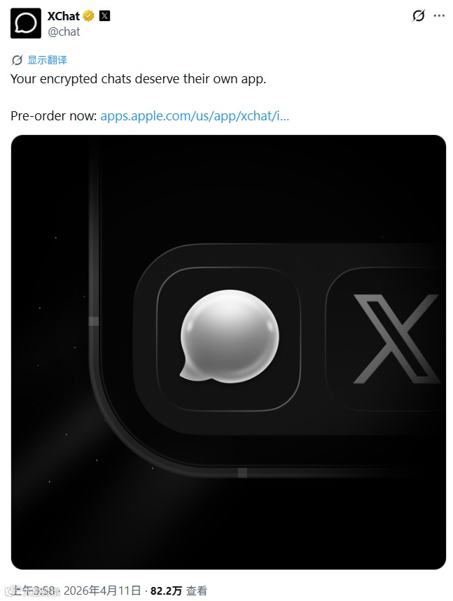 XChat将于4月17日推出iOS端消息应用,主打隐私保护,采用端到端加密技术。(新浪财经)