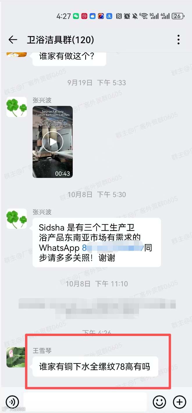 本群专为卫浴洁具行业的外贸企业及生产厂家设立,严格限定行业准入。