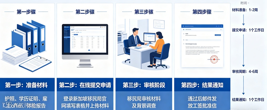 雇主提交申请:雇主通过新加坡人力部(MOM)官网提交申请,公司需准备相关资料并进行担保。