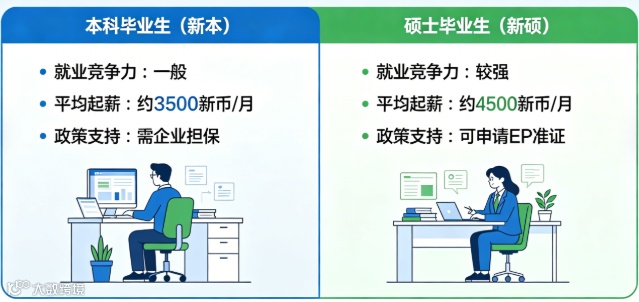 无论是本科还是硕士毕业生,都可以申请EP(就业准证),并且都有机会转为PR(永久居民)。能否成功申请,核心取决于专业选择、实习经历、薪资水平以及院校背景等因素。