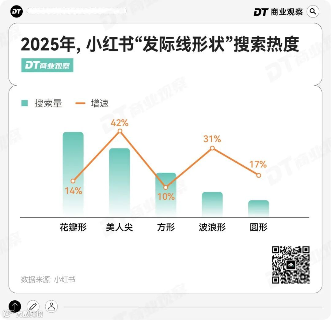 2025年,小红书上"发缝加密植发效果"搜索量增长1248%,"高颧骨发际线设计"增长1931%,"长中庭发际线设计"增长1080%。