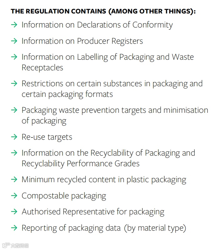 它打破了以往各国的规则壁垒,对所有进入欧盟市场的带包装产品,设立了贯穿全生命周期的强制性合规标准。