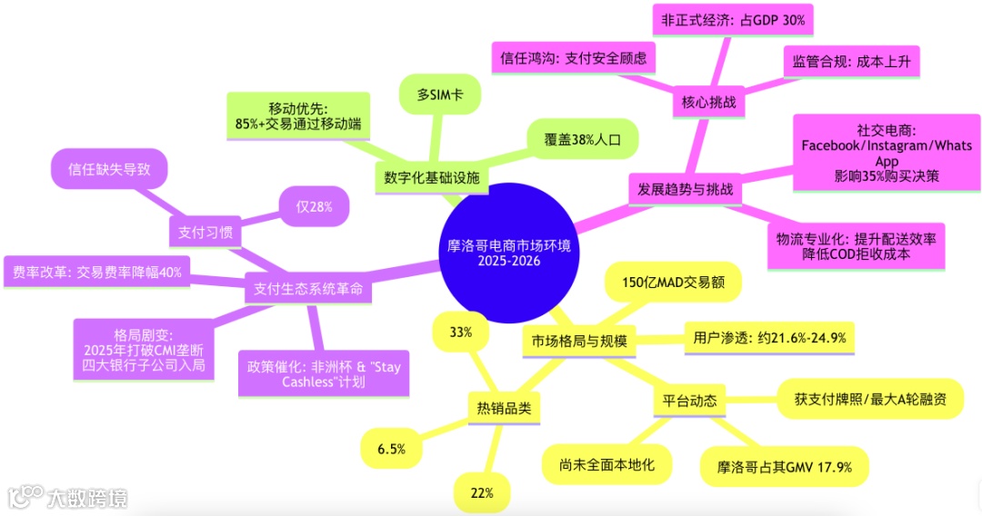 - 政府目标:到2025年底实现100亿MAD电商收入,到2030年达到200亿MAD