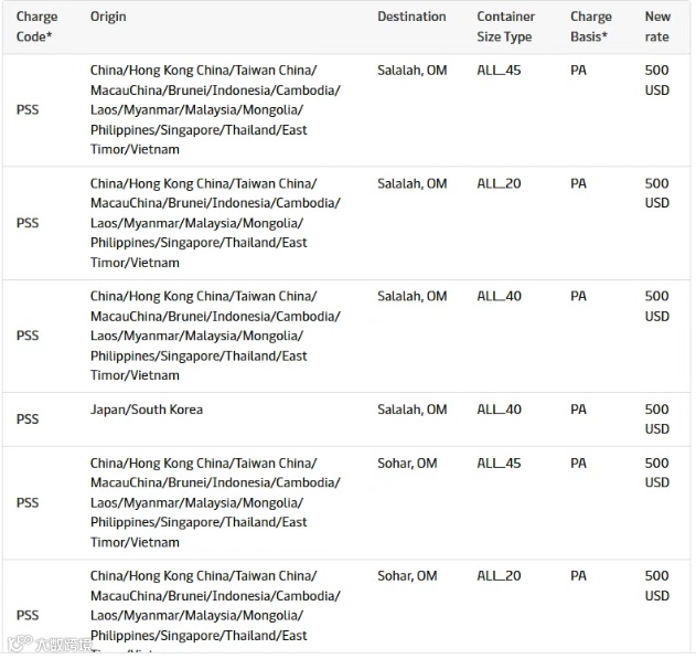 在亚太至中东航线,马士基统一征收每箱500美元的PSS,已于3月30日生效。