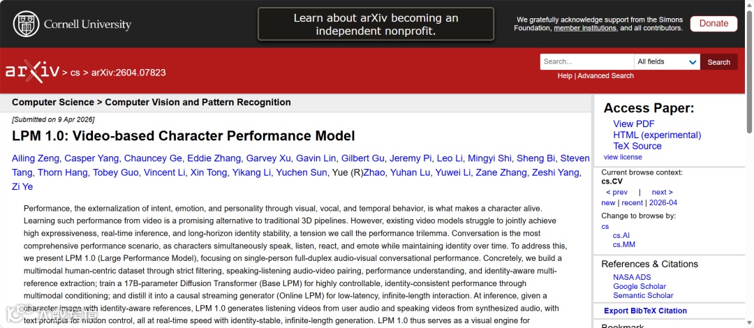 4月10日,米哈游创始人蔡浩宇旗下AI公司 Anuttacon 在arXiv发布论文,公开其新一代视频生成模型 LPM 1.0(Large Performance Model),并同步上线项目主页。
