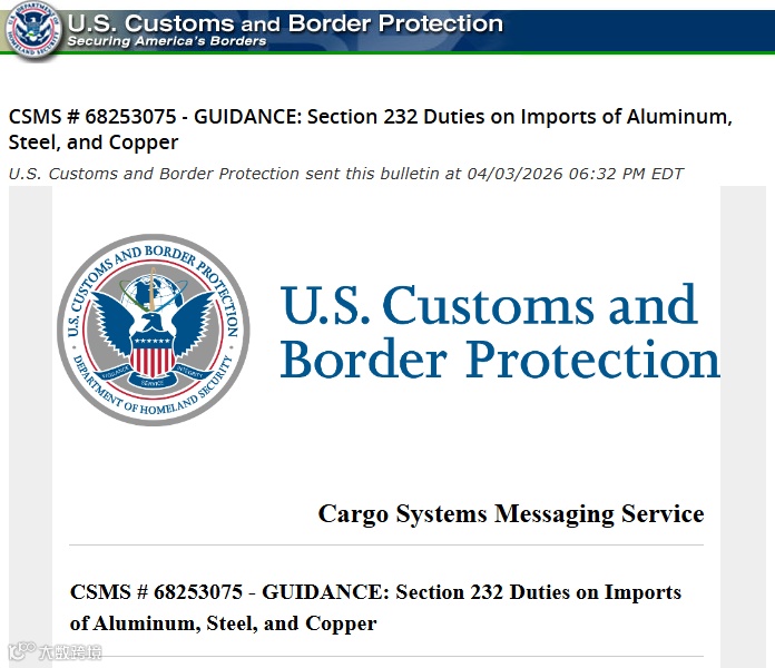2026年4月6日(美国东部时间 00:01)起,美国Section 232钢、铝、铜关税新政正式生效。
