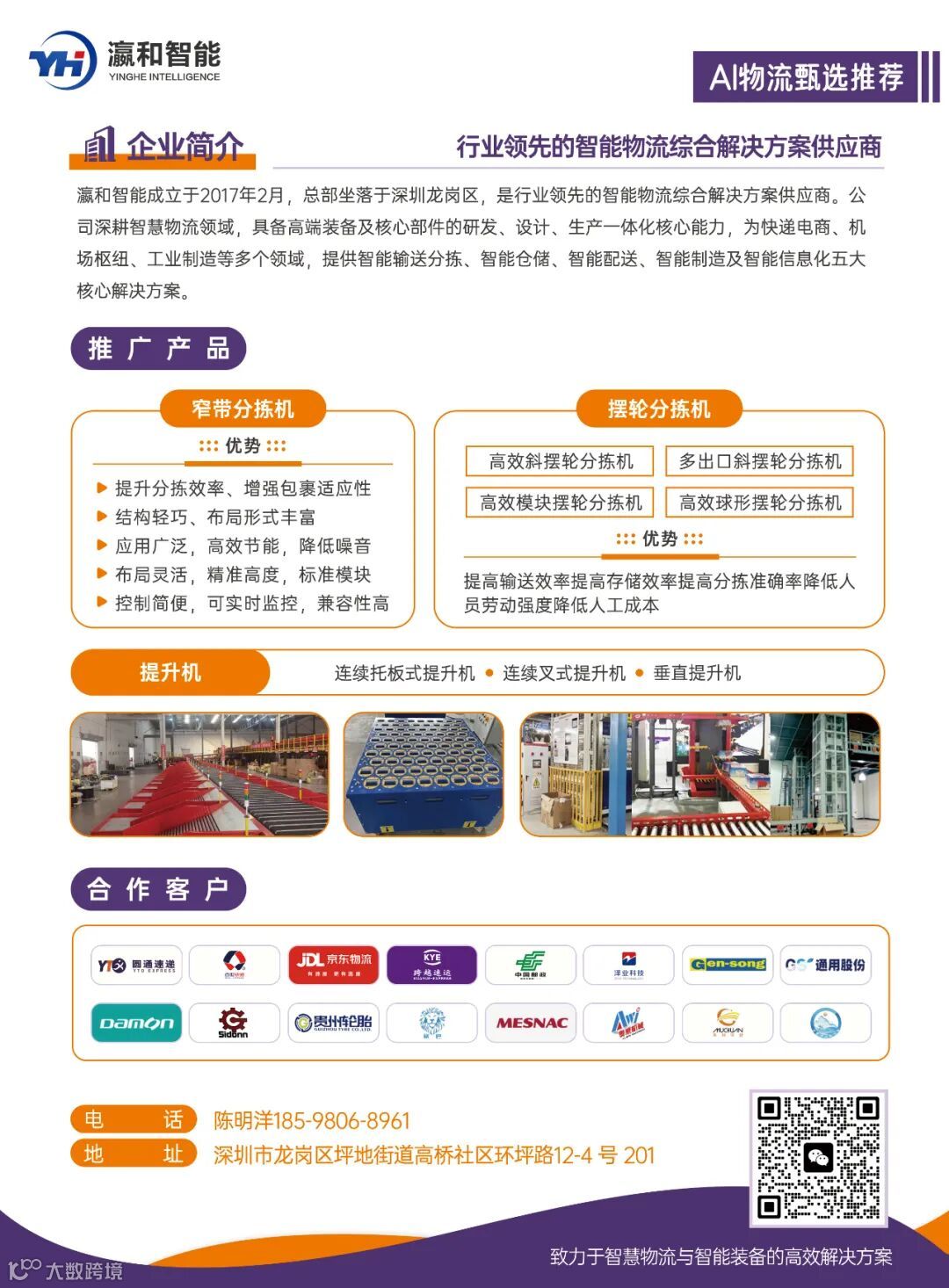 瀛和智能装备(广东)有限公司是专注智能物流解决方案的一站式自动化集成商。公司集核心设备研发、设计、生产于一体,通过技术创新推动仓储配送智能化升级,为快递电商、机场及制造业提供分拣、仓储、配送、制造及信息化五大解决方案。凭借全产业链技术优势,致力于打造全球一流智能物流装备企业。