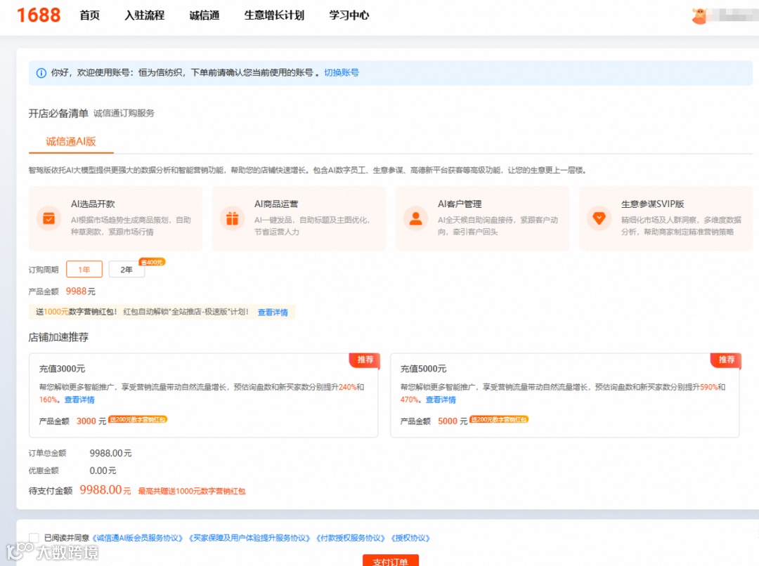 第二步、订购诚信通