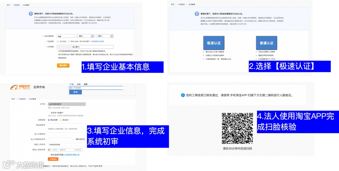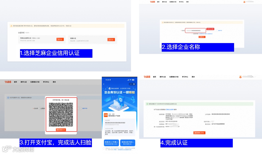 开通1688诚信通服务必须完成企业认证,提供三种认证路径: