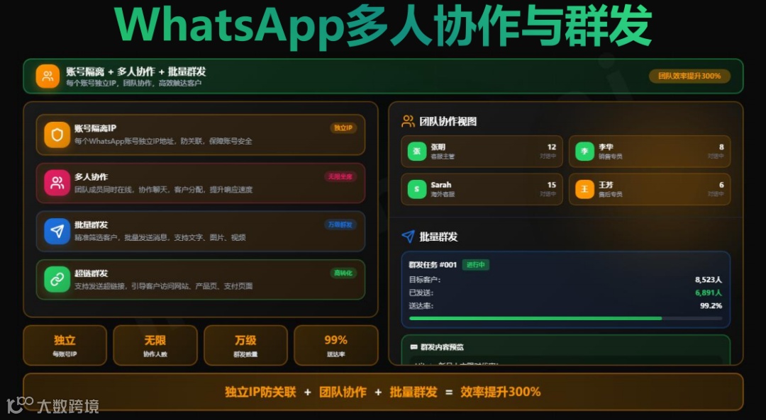 他不知道的是,真正聪明的外贸人,早就把WhatsApp私域当成“战略资产”来运营了——用AI客服系统,多号分流、自动回复、批量触达、风控预警,封了一个号,还有十个号顶上。