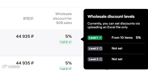 Wildberries平台4月8日起,可以为B2B销售设置批量折扣了~帮助卖家拉高客单、促进大单、留住稳定 B 端客户,简单设置就能用