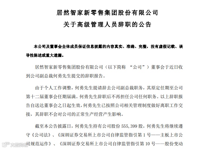 居然智家:副总裁辞职与实控人变更
