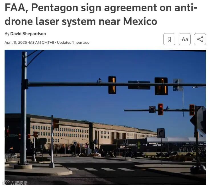 4月10日,美国联邦航空管理局(FAA)与五角大楼联合宣布,美国军方获准在美墨边境南部地区部署高能激光反无人机系统。