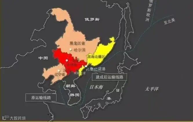 2017年中俄签署《关于共同开发"滨海1号"和"滨海2号"国际交通走廊的谅解备忘录》,其中"滨海2号"走廊连接中国吉林省与俄扎鲁比诺等港口。2018年海关总署批准经珲马铁路至扎鲁比诺港开展内贸货物跨境运输,形成"珲春—扎鲁比诺港—釜山—宁波"15天往返物流通道。