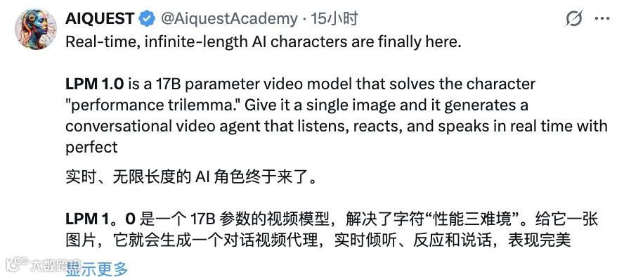 模型旨在提升AI角色表现力,使其更加生动自然。