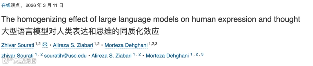 南加州大学最新研究证实,人工智能正导致全球人类思维与表达深度同质化。