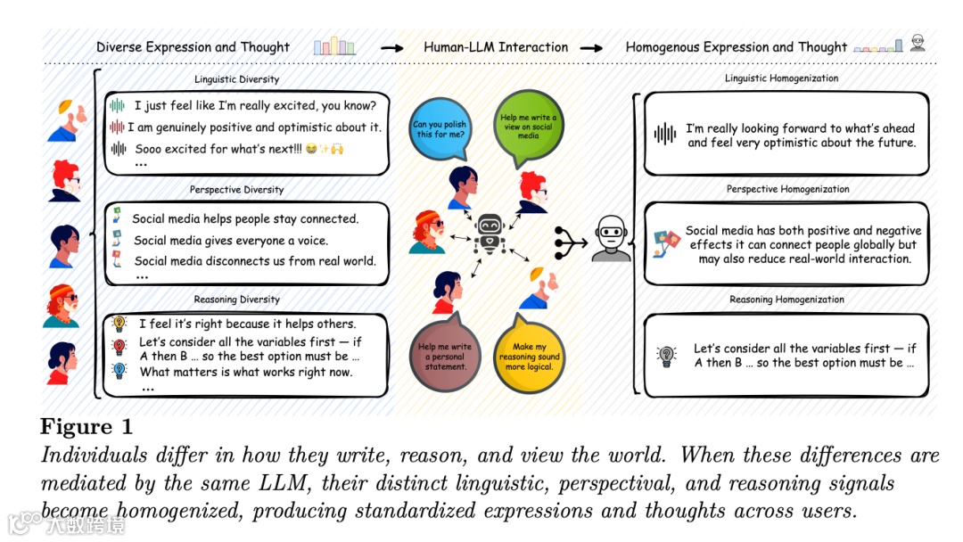 AI生成内容显著降低文本复杂度差异,作者人格、性别、年龄等特征识别度下降,语气与文化认同的独特性被消解。即便刻意模仿不同风格,仍无法还原真实表达差异。