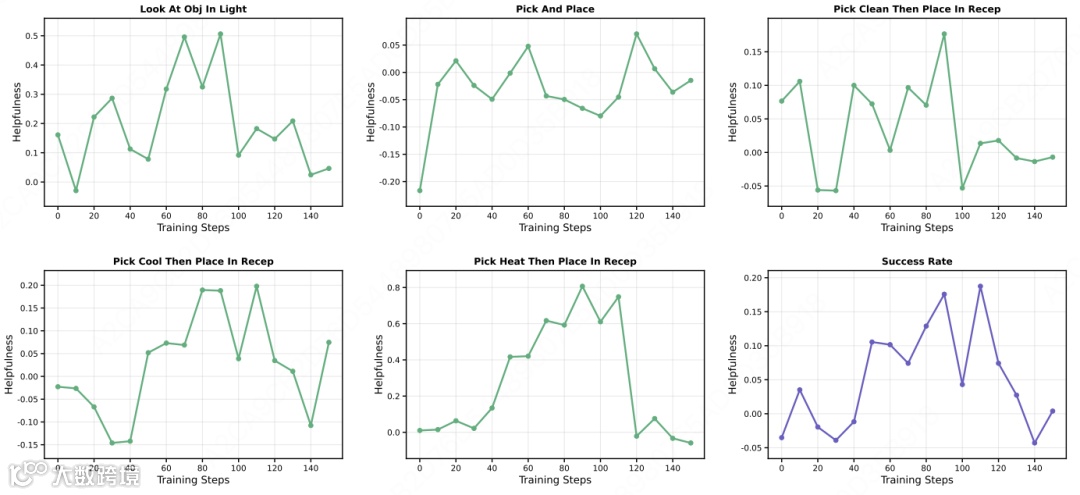 训练现象表明:早期模型未有效利用技能(帮助度低),中期学会利用(帮助度上升),后期完全内化(帮助度回落)。