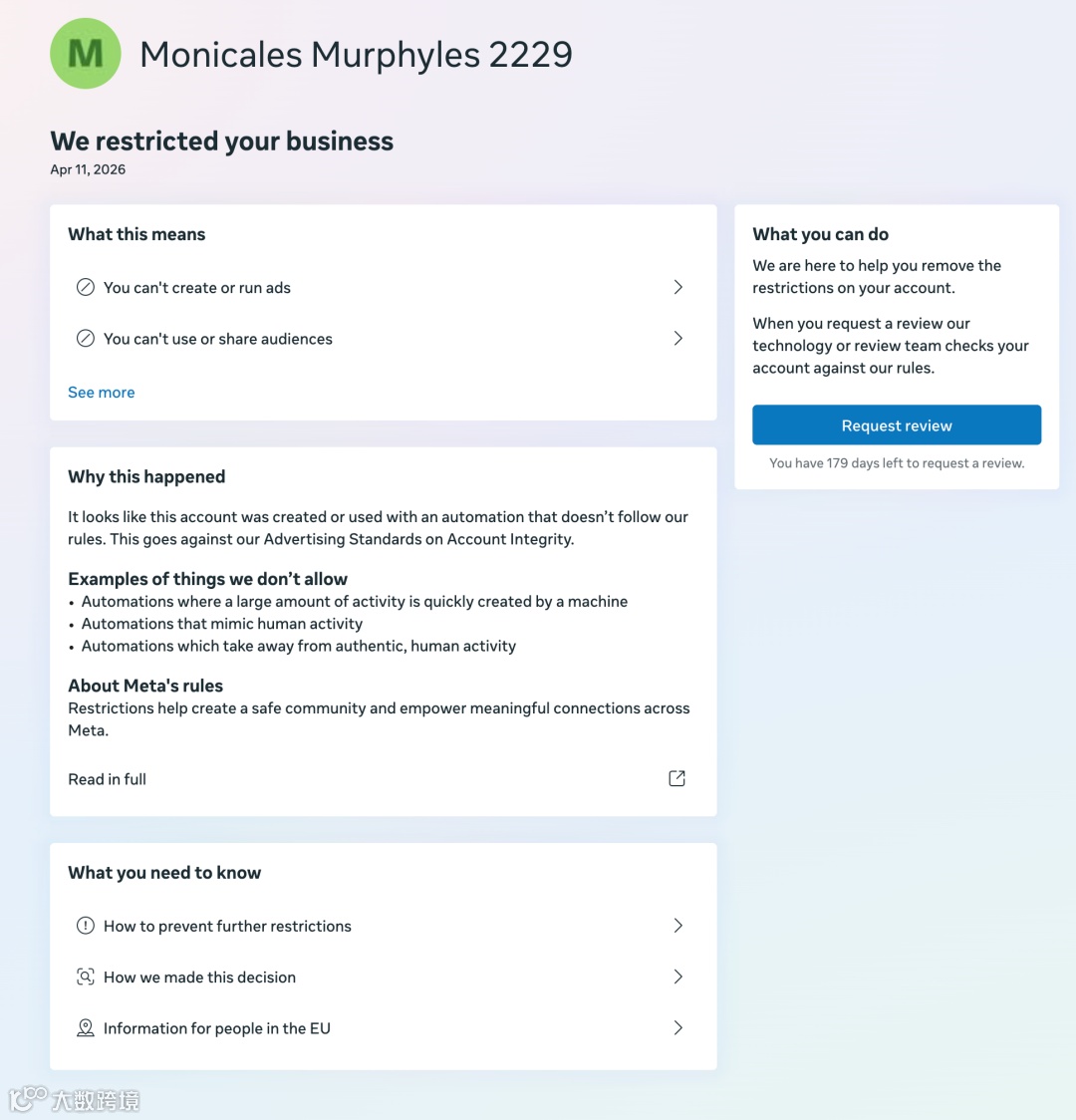Meta持续强化风险管控体系,近期针对中国代理账户开户实施实名认证AB测试。